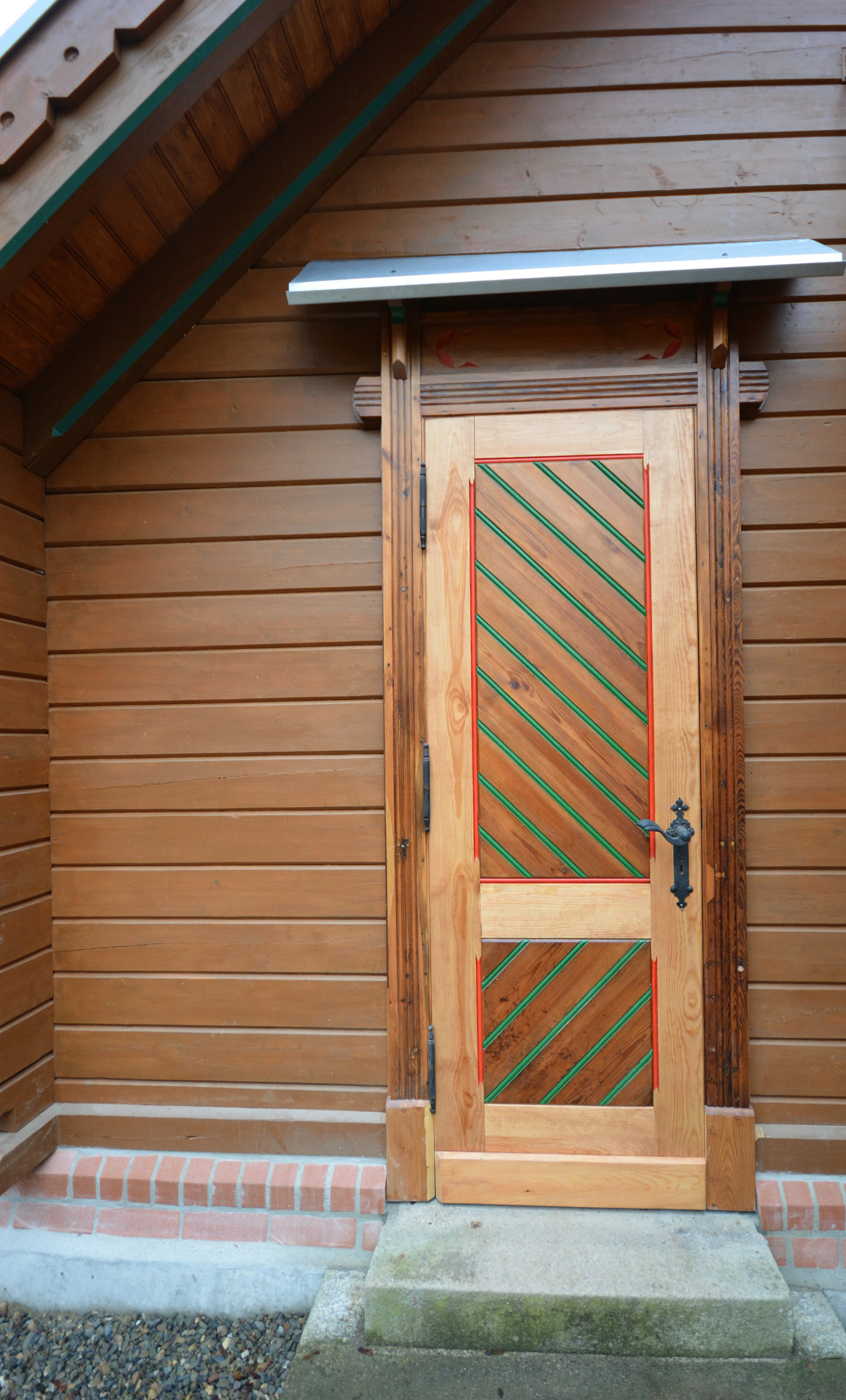 Auch im Innenraum ist einiges passiert. Entsprechend der ursprünglichen Fußbodengestaltung wurde unter den Sitzreihen eine hochwertige Dielung verlegt, alle anderen Bereiche wurden mit manufakturgefertigten Steinplatten ausgelegt. Sobald die Dielung befestigt werden kann, werden auch das Gestühl und der Altar wieder eingeräumt. Bei der Restaurierung der Türen kam die ursprüngliche Fassung zum Vorschein. Beim letzten Anstrich hat man die Türen einheitlich braun gestrichen, tatsächlich hatten sie farbliche Absetzungen. Diese sind jetzt wieder sichtbar. Ein kompletter neuer Innenanstrich konnte aus Kostengründen noch nicht realisiert werden.